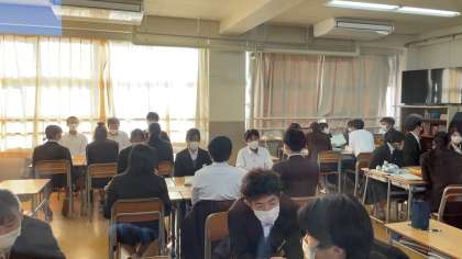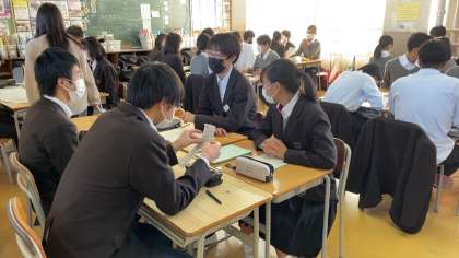 今日の5時間目は、面接練習をしました。前回記入した面接メモを参考に、面接官・面接者・アドバイザーに分かれて、練習をしています。志望理由や中学校生活での思い出、担任の先生の名前などを質問しされ、自分の言葉で答えています。