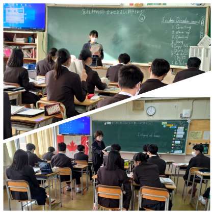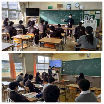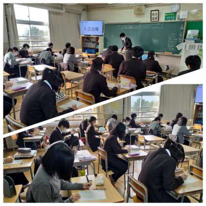 1時間目、3年生の授業の様子です。1組、英語(分割) 2組、社会 3組、数学(分割)でした。