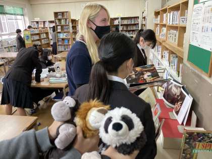 今日は、ALTの先生とともに本を楽しんでいました。