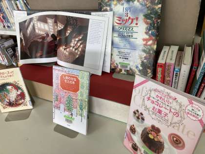 図書館では、クリスマス特集の展示に変わりました。