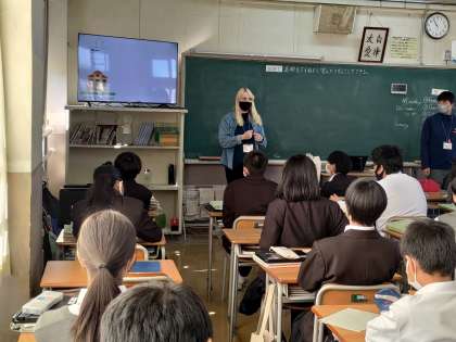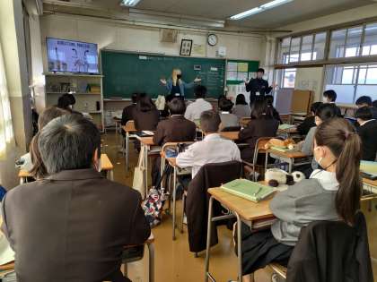 大東市教育委員会の指導主事先生がAETの先生の授業の様子を参観しに来られました。