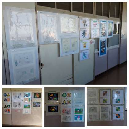大東市中学校教育研究会美術科部会は毎年、市内中学校の生徒の作品を各校で巡回展示をしており、今日から谷川中での巡回期間が始まりました。写真は各階に展示している作品です。懇談でお越しの際にはご覧ください。