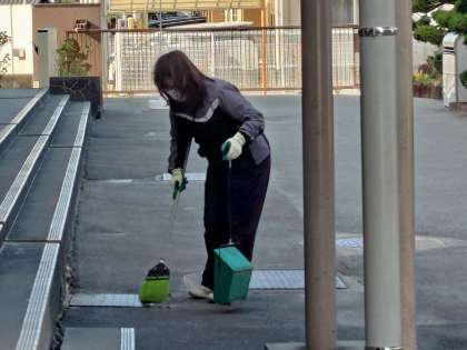 集中下足場付近の掃除をして下さっています。寒い中、ありがとうございます。