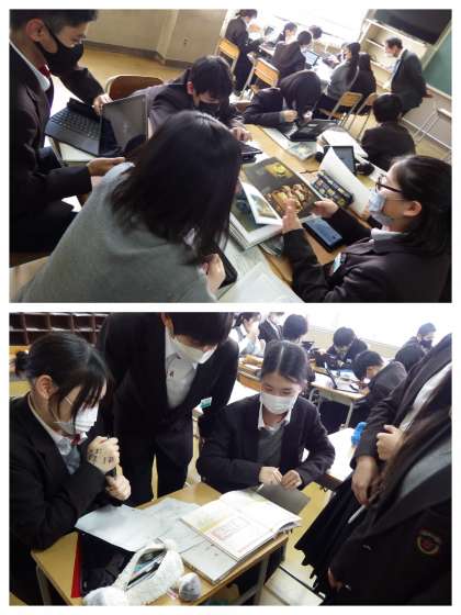 今日から大阪大空襲について、テーマごとに分かれて調べ学習です。