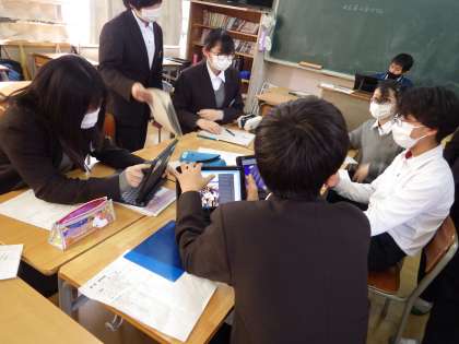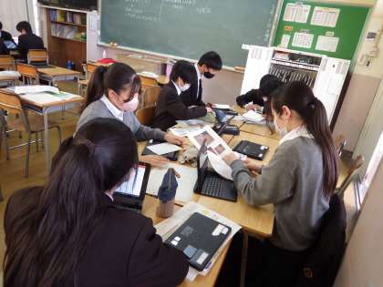 2年生の平和学習で行っている「大阪大空襲」の調べ学習は、レポートの完成に近づいています。