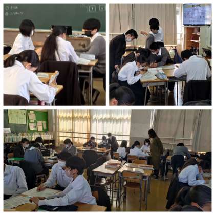 1年生の授業です。体育、社会です。