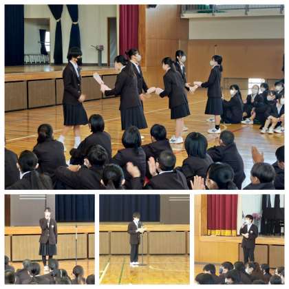 令和5年度1学期がスタートしました。始業式の後、生徒会による対面式がありました。