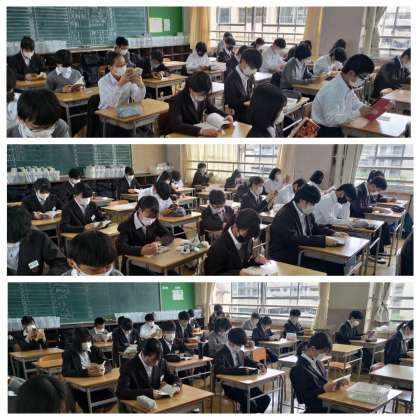 写真は2年生の朝の読書の様子です。
