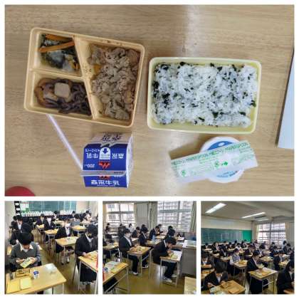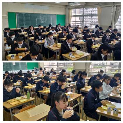 給食2日目の様子です。今年は、「黙食」から「静食」です。