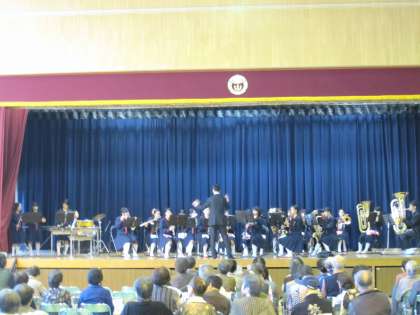 本日、吹奏楽部が「深野校区福祉委員会・全体交流会」(深野小学校)で演奏を披露しました。