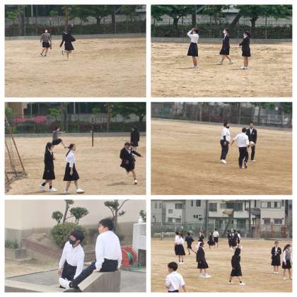今日は天気が良いので、グランドで遊ぶ生徒が多いようです。