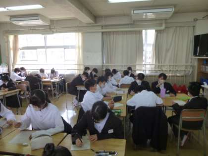 中学校と小学校とのちがいについて考え、班で交流しました。