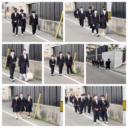 おはようございます。今朝はひんやりした朝です。写真は登校の様子です。元気な挨拶は気持ち良いです。