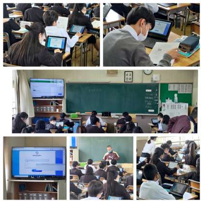 1年生の理科です。タブレット端末を使って演習をするための準備をしています。
