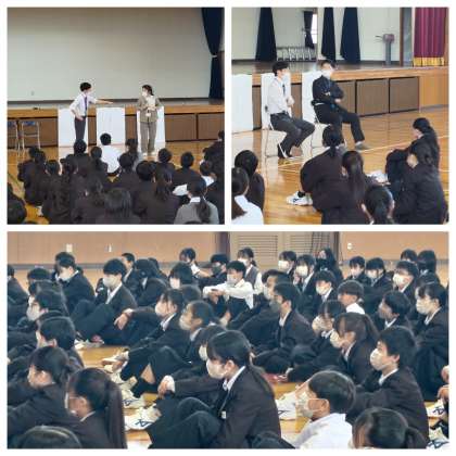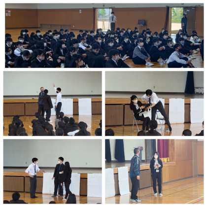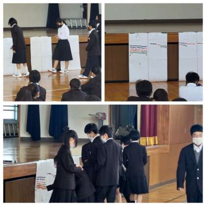 1年生が学年特活を行いました。「心の境界線」を学んでいます。3つの小学校から入学してくる本校では、1年生のこの時期、まだお互いに多くを知らない仲間もいます。パーソナルスペースや付き合いの中で一人ひとり感じ方も違います。自分たちの集団が一人ひとりにとってどこに気を付けていけば居心地の良い集団になっていくかを勉強しています。