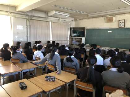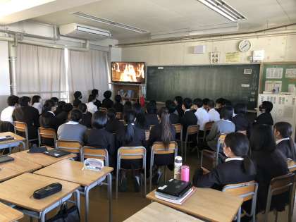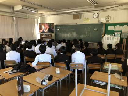 今日は総合の時間に、映画「さとうきび畑の唄」を鑑賞しました。全員が顔を上げ、熱心に見入っていました。映画の中で「戦争は何も解決しない。戦争のせいでたくさんの人たちが家族を失う。愛する人と離れ離れになる。みんなは生きて戦争のない国をつくってほしい」という言葉がありました。命の大切さ、なんのために生きるのかを考えることができました。