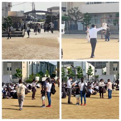 避難訓練終了後に災害時の保護者への引き渡し訓練を行いました。協力いただいた保護者の皆様にはありがとうございました。