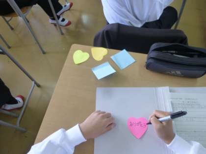 今日は1回目の導入として、「言われてうれしい言葉」と「言われて嫌な言葉」について意見を出し合い交流しました。