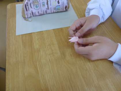 本日の全校集会で修学旅行実行委員長から千羽鶴作成の依頼がありました。