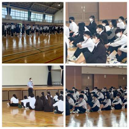 3年生は朝、学年集会でした。生活全般について主任先生から話がありました。