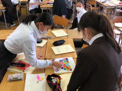 3年生 修学旅行に向けて 〜平和アート&しおり綴じ〜