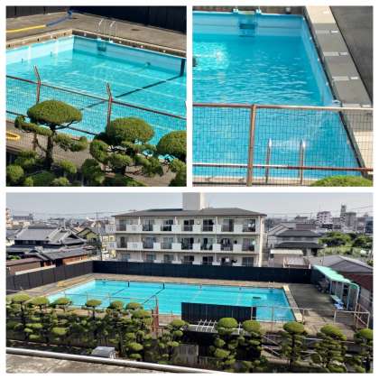 先週末に水泳部の生徒がプール清掃をしてくれました。水泳の準備も始まりました。いよいよ夏ですね。