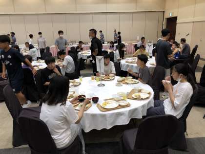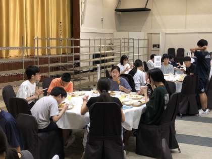 入浴を済ませて夕食です。みんなお腹が空いていたようで何度もお代わりに行っています。