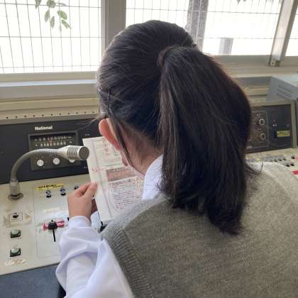 図書委員会の1年生がはじめてお昼の放送を担当しました。