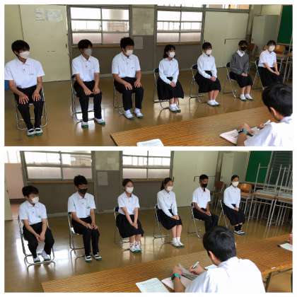 まずは1組です。みんな待機場所からいい緊張感のもと、面接に臨んでいました。校長先生からの質問に、しっかりと自分の言葉で答えています。