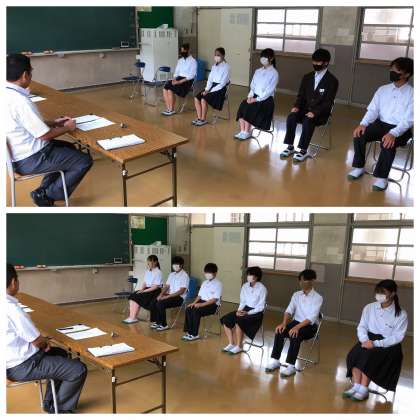 3年生は今日から模擬面接を実施しています。自分の進路で面接試験がない人でも、これからの人生で面接を経験する人は多いです。