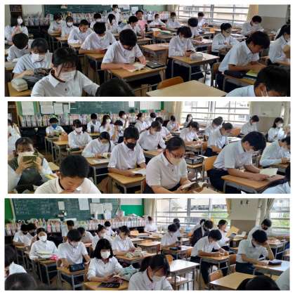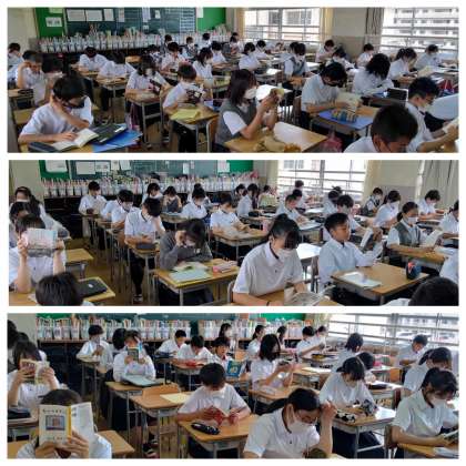 週の最初の活動、朝の読書です。全学年全クラスです。