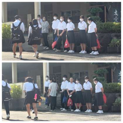 写真は今朝のあいさつ運動の様子です。今日から風紀委員があいさつに立ってくれています。