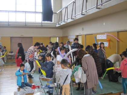 大縄跳び(青少年指導員)、バルーンアート(子ども育成連絡協議会)・射的(深野小校区御父会)の様子です。