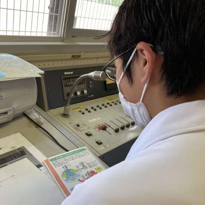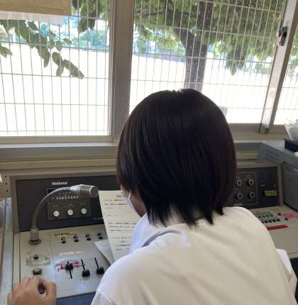 図書委員会が担当する金曜日お昼の放送のようすです。