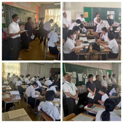今日は本校の学校の様子をみていただきました。生徒の授業での様子や挨拶など、褒めていただきました。