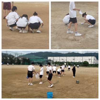 生徒会が体育大会の準備の1つとして、グランドの小石拾い(クリーンアップ)を計画、呼びかけに応じて約100名のボランティア生徒の協力の下、取り組んでくれています。