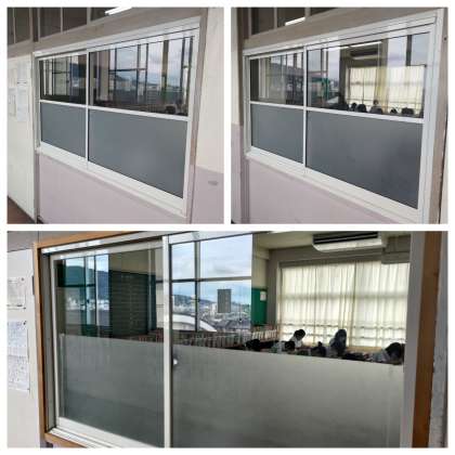 写真は1年生の教室の窓を撮影したものです。環境整備は居心地の良い学校の要素の1つです。一学期から集会などで生徒に話しています。一学期は3年生の教室の窓について褒めていました。今朝、校舎を巡回したときに、1年生の窓がこれまで以上にきれいだったので生徒と先生に伝えました。
