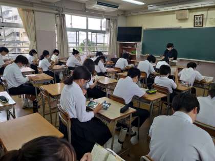 朝の職員全体打ち合わせの後、各学年が学年の打ち合わせをしている時間に生徒の様子を見に行きました。登校して校舎の階段を登る生徒の足取りが心なしか疲れている様だったので、「疲れてる?」と聞くと、うなづきました。「今日は金曜日、最後の日だから頑張ろう」と加えるとニコッとしていました。
