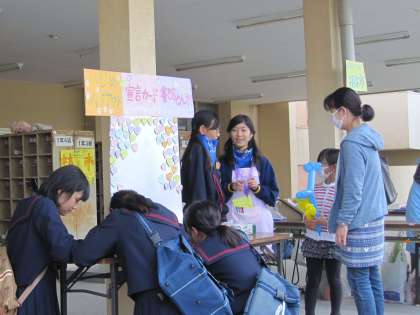 先日の校区まつりの際にも、いじめノックアウト宣言を募り、生徒だけでなく保護者や地域の皆様にも参加していただきました。