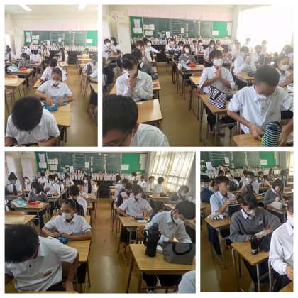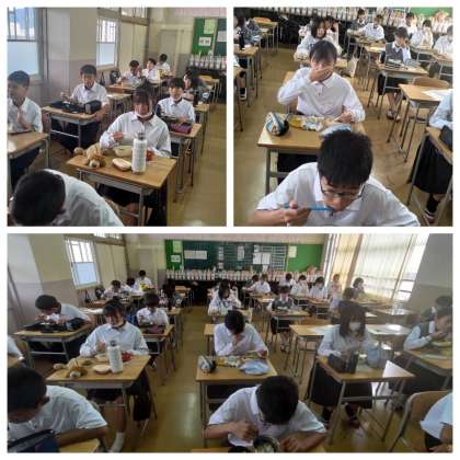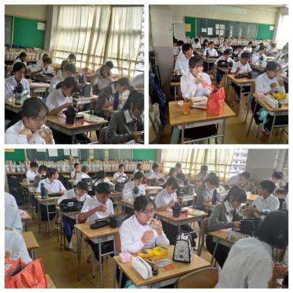 昼食の様子、1年生です。お弁当ありがとうございます。