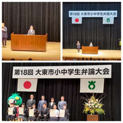 本日午後、大東市総合文化センターで第18回大東市小中学生弁論大会が行われました。本校生徒も本選出場しました。大勢の前での弁論でしたが、とても立派に自分の思いを伝えることができました。