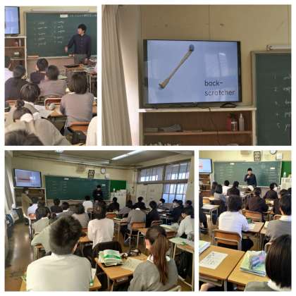 2年生、英語です。画面に写った物の使い方を説明しようとしています。