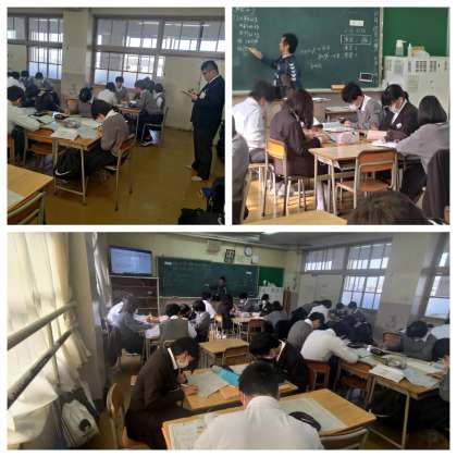 2年生、理科の様子です。教育委員会の指導主事の先生が参観して下さっています。