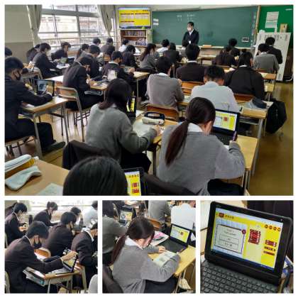 3年生、技術の授業です。プログラミングを学んでいます。