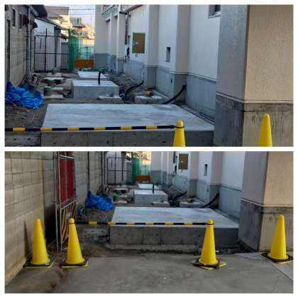 写真は体育館の空調設備工事の様子です。室外機の設置場所の形ができてきました。