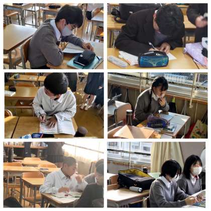 朝の読書前の教室です。明日からテストなので学習している生徒の様子を収めました。