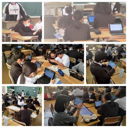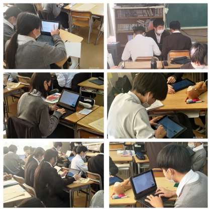 自習の時間、PCで問題を解くことが多くなりました。1年生、3年生です。