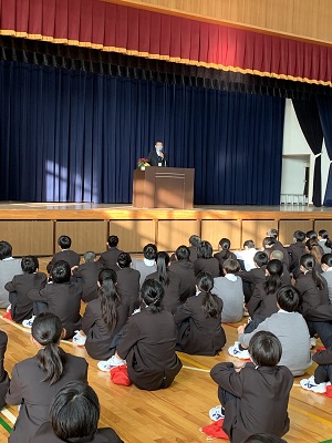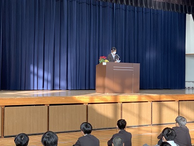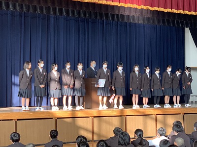 また、生徒会から先週末に参加したもちつき大会ボランティアの報告があり、お礼にいただいた花も紹介されました。