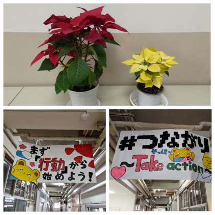 生徒会の声掛けによる地域ボランティアのお礼として鉢植えをいただきました。ありがとうございます。
