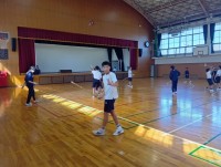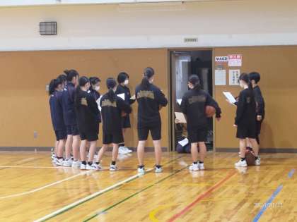 写真は今朝の体育館、女子バスケットボール部が朝練をしていました。